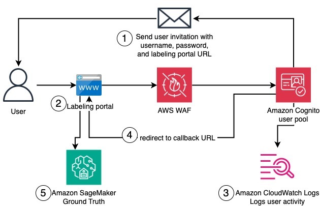 After this preliminary setup, a employee can be a part of the personal workforce and entry the labeling. The authentication movement contains the e-mail invitation, preliminary registration, authentication, and login to the labeling portal. The next diagram illustrates this workflow.