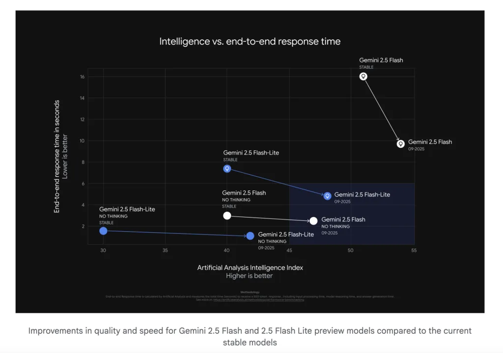 - Intelligence index deltas: The September previews for Flash and Flash-Lite enhance on Synthetic Evaluation’ mixture “intelligence” scores in contrast with prior steady releases (web site pages break down reasoning vs. non-reasoning tracks and blended value assumptions).