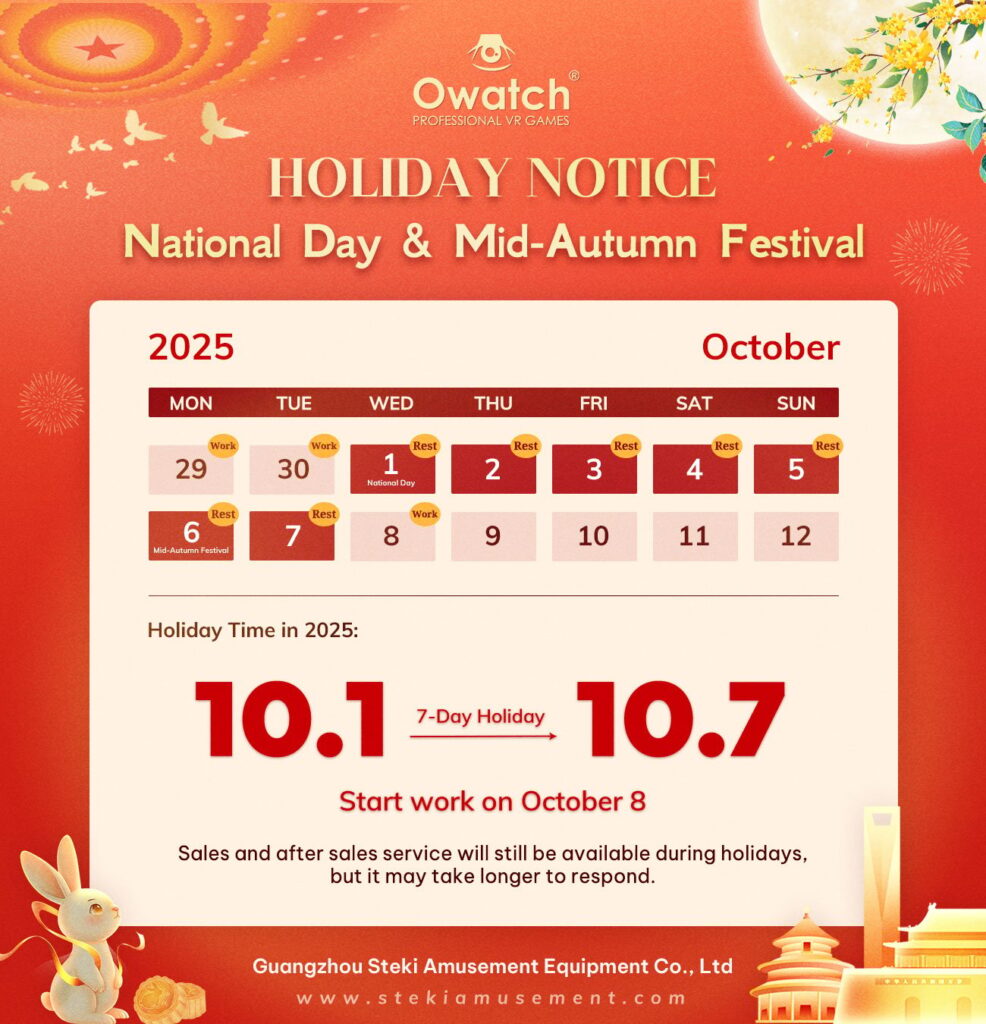 Because the necessary Chinese language festivals – Nationwide Day and Mid – Autumn Competition are approaching, our firm (Guangzhou Steki Amusement Tools Co., Ltd) may have a vacation interval. Right here, we want to inform you of our vacation preparations prematurely so as to make related plans forward of time.