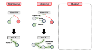 Determine 1. Three regimes of exploration: Present RL mannequin can discover through: (1) sharpening: merely will increase chance on traces...